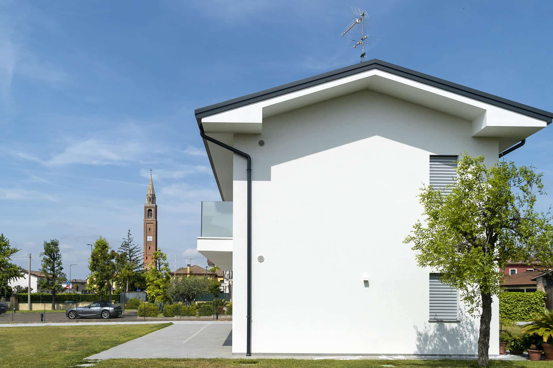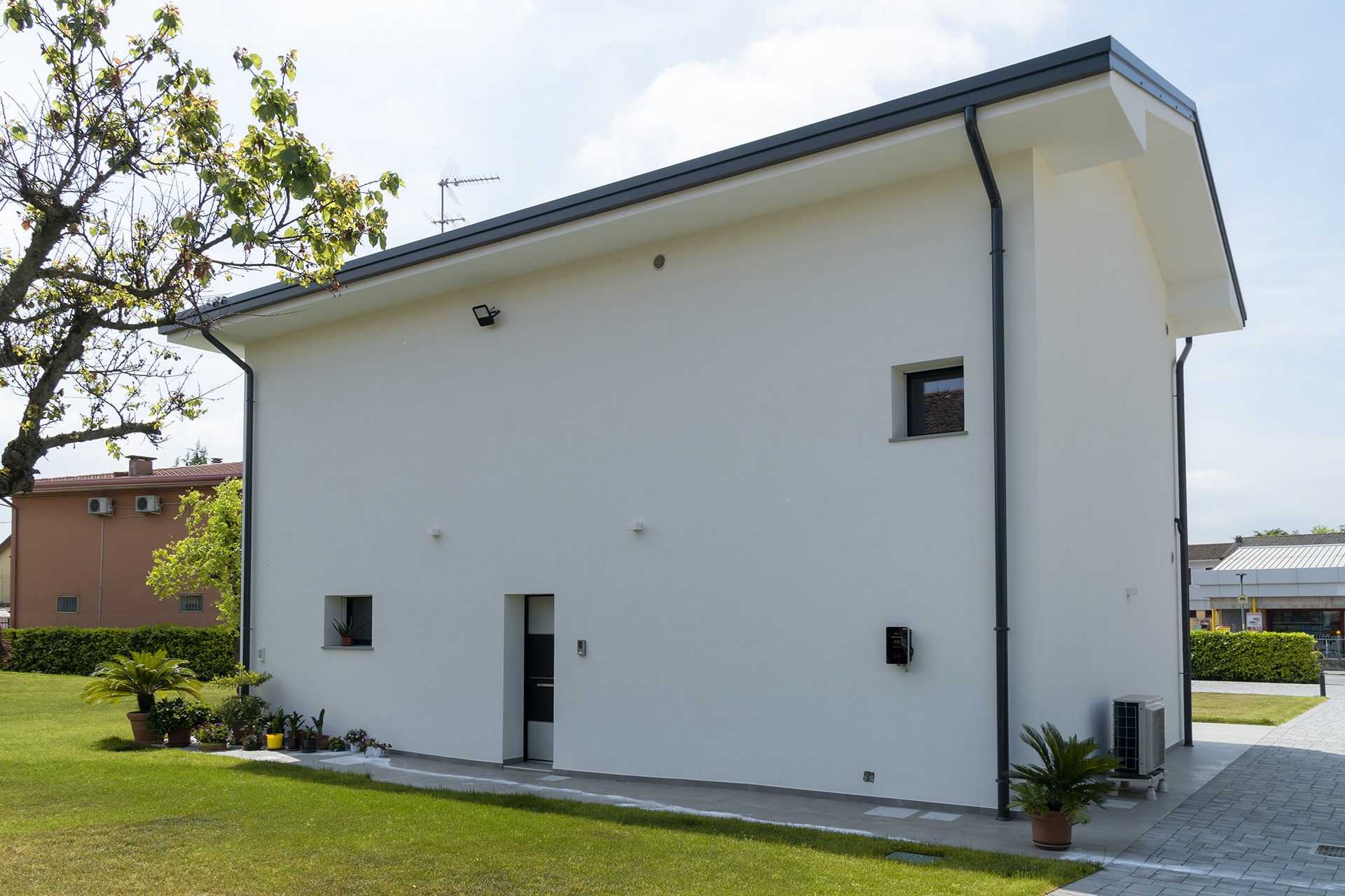 In un lotto privo di confini materiali si è creato un atelier di pittura a stretto contatto con gli spazi esterni, dove si sviluppa un prato che circonda l’intera proprietà. Al piano primo è situata l’abitazione dell’artista.